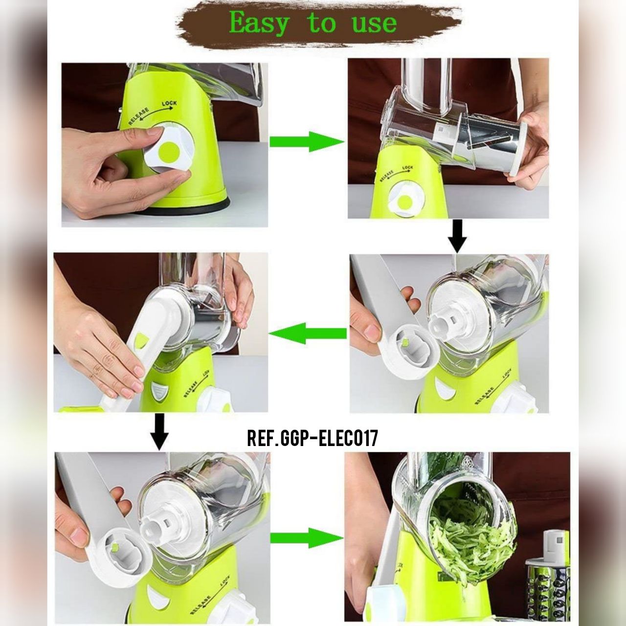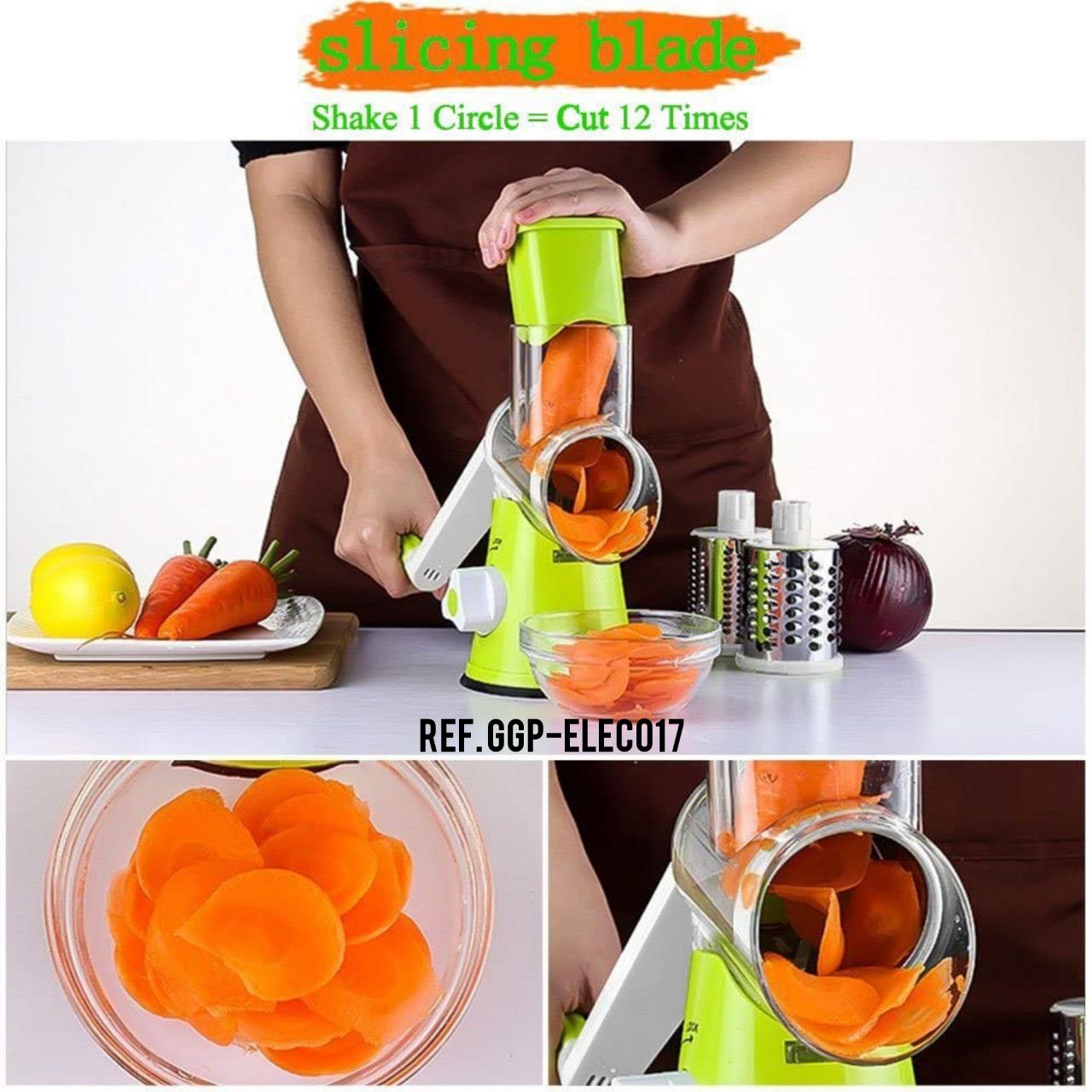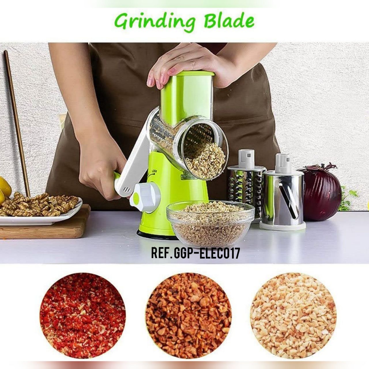 Tambor rotativo es una herramienta de cocina eficiente con 3 tambores de acero inoxidable para alistar los alimentos en cuestión de segundos 🥒🥔🍅🥕 Con la este marivilloso implemento podrás rallar: queso, vegetales, chocolate, zanahoria, repollo, pan de miga, calabacín, rábano y nueces, creando incluso rebanadas, ensalada de verduras, coleslaw, papas fritas y pizza, diferentes cortes y riffles decorativos.