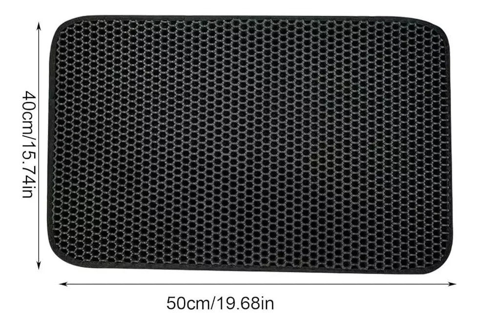 - Excelente para capturar la arena para gatos las patas y las cajas arena, su diseño doble capa completamente probado ayuda a atrapar la arena en el medio y evita que la arena se caiga.Tamaño: 50 cm de largo x 40 cm de ancho x 1.2 cm de alto aprox.